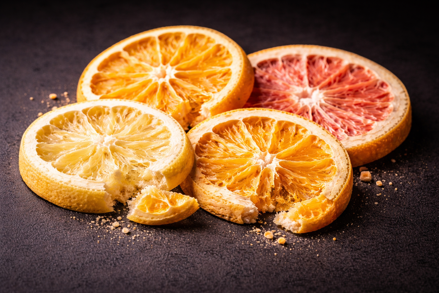 En una cámara de vacío, eliminamos el agua preservando estructura, textura y aroma.